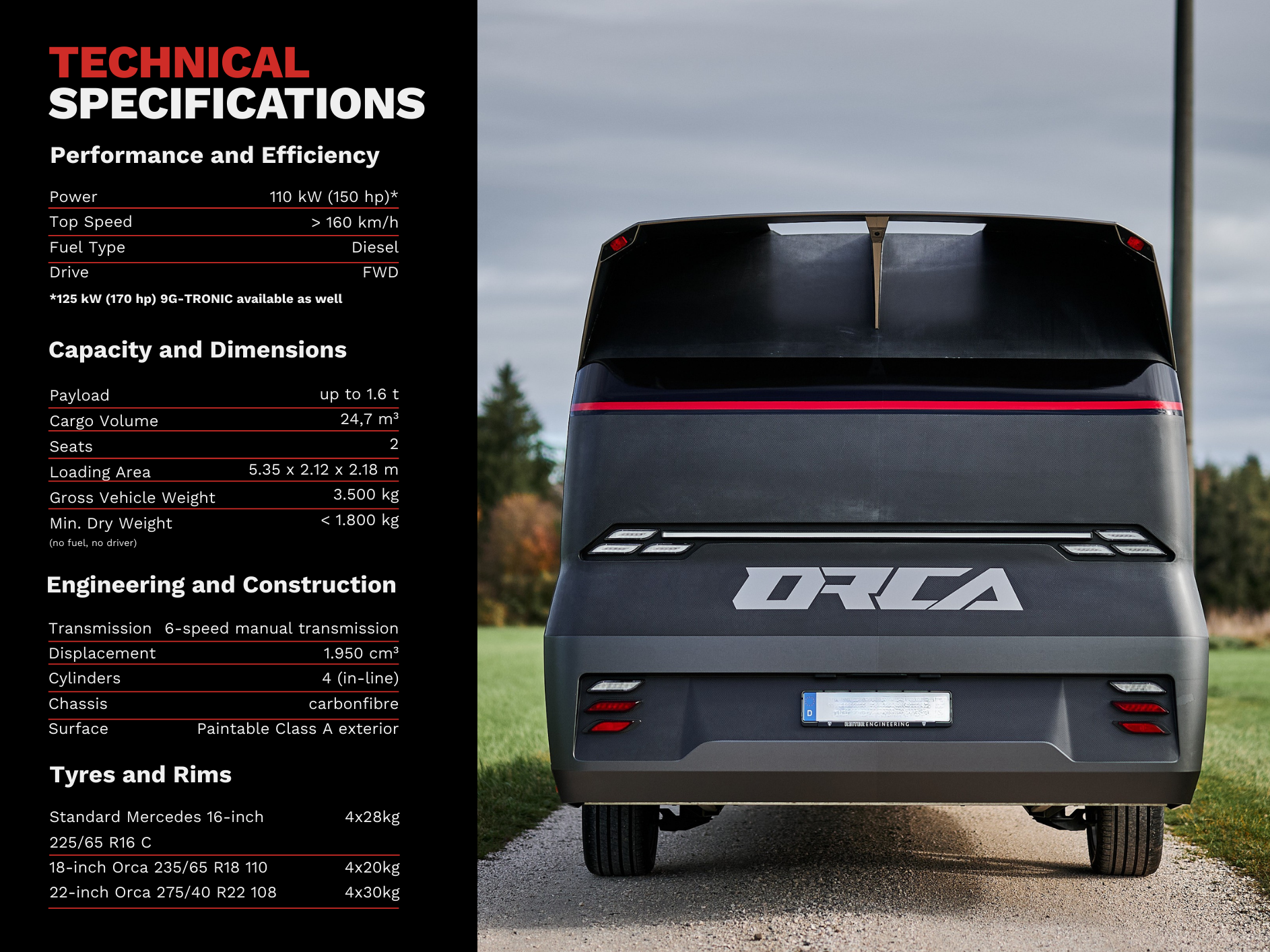 - Up to 1.6 t payload – less than 3.5 t total weight